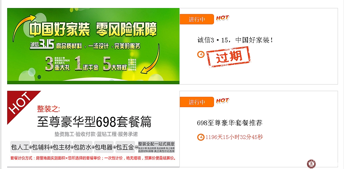 想必装修公司的老板们,都会定期或者节假日内,推荐一些优惠活动吧!既然做了优惠活动,肯定希望通过活动提高公司的业绩。装饰企业的老总们,每天张扬的宣传活动,可是却不见效果。乐家就为您解决这一难题,您们只要有新的活动了,都可以放到官网上去,让业主能够随时了解公司的动态。