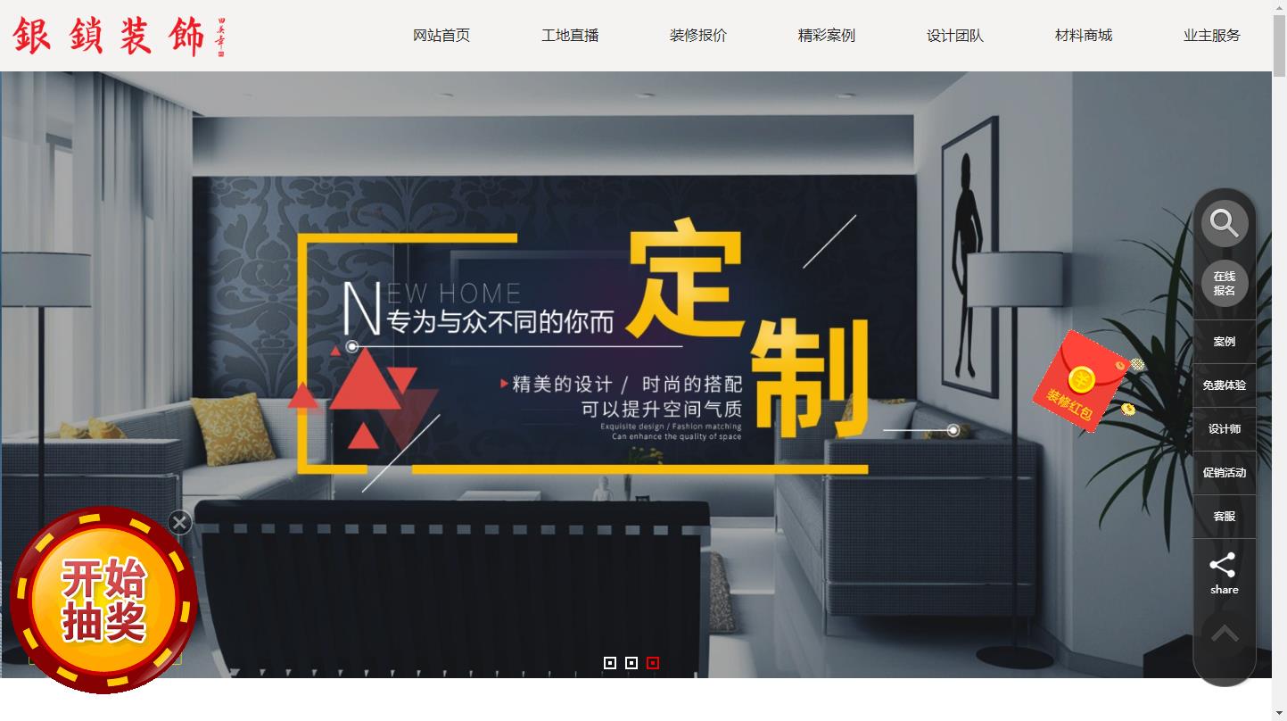 热烈祝贺南京银锁装饰2018版官网上线!新官网内容丰富,栏目齐全,而且支持电脑,手机,微信公众号三网平台接入,更加适合业主的多方面浏览习惯。公司的新官网自上线以来,经过几日的调试,稳定,已经完备,可以业主展示展示进入官网完成很多最最自助装修预约,咨询服务,比如预约设计师,预约查看在施工地,参加活动报名以及抽奖,我们都有在线客服,一对一解决业主的装修疑问咨询。