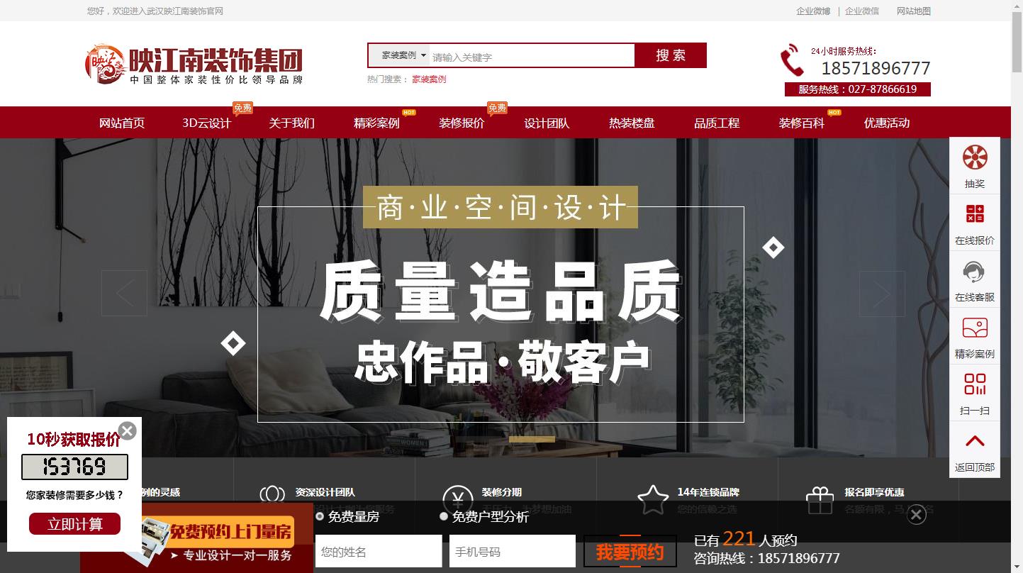 乐后屋装企营销平台热烈祝贺武汉映江南装饰集团2018新版官方网站上线