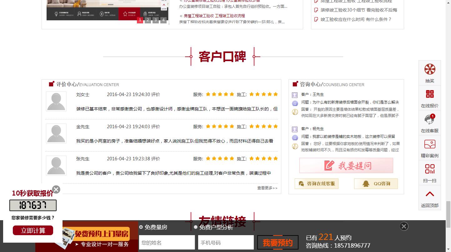 2018版官网上线!新官网内容丰富,栏目齐全,而且支持电脑,手机,微信公众号三网平台接入,更加适合业主的多方面浏览习惯。公司的新官网自上线以来,经过几日的调试,稳定,已经完备,业主可以进入官网完成很多自助装修预约,咨询服务,比如预约设计师,预约查看在施工地,参加活动报名以及抽奖,我们都有在线客服,一对一解决业主的装修疑问咨询。
