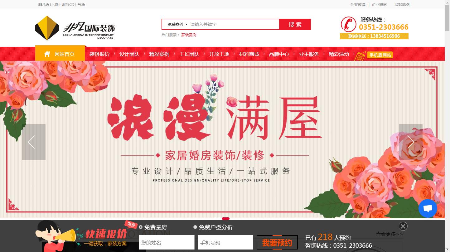热烈祝贺太原非凡国际装饰2018版官网上线!新官网内容丰富,栏目齐全,而且支持电脑,手机,微信公众号三网平台接入,更加适合业主的多方面浏览习惯。公司的新官网自上线以来,经过几日的调试,稳定,已经完备,业主可以进入官网完成很多自助装修预约,咨询服务,比如预约设计师,预约查看在施工地,参加活动报名以及抽奖,我们都有在线客服,一对一解决业主的装修疑问咨询。