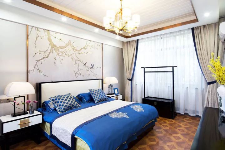 对于热爱传统文化的人来说,典雅而富有书卷气的中式风格是卧室装修首选。无论是中式家具,仿古饰品、吊灯,还是中国画一样的背景墙,都彰显着中华民族的家居风范与传统文化的审美意蕴。当中式实木家具端正摆放,暖黄色灯光点亮一室古意,仿佛穿越千年,感受名士风度,一方卧室,便是连通古今的最佳渠道,置身其中,让人只想在这东方诗意里,隔绝一切喧嚣杂念,回归最真实的恬淡心境。中式风格的卧室多采用对称式的布局方式,层次中正和谐,格调优雅大气,造型简朴优美,色彩浓重而成熟,尽显中国古朴神韵。当处于这个舒适且有文化氛围的生活环境,将生活温度与哲思融于一室古韵风情中,享受这难得可贵的片刻宁静,让心得以安宁,居有定所。