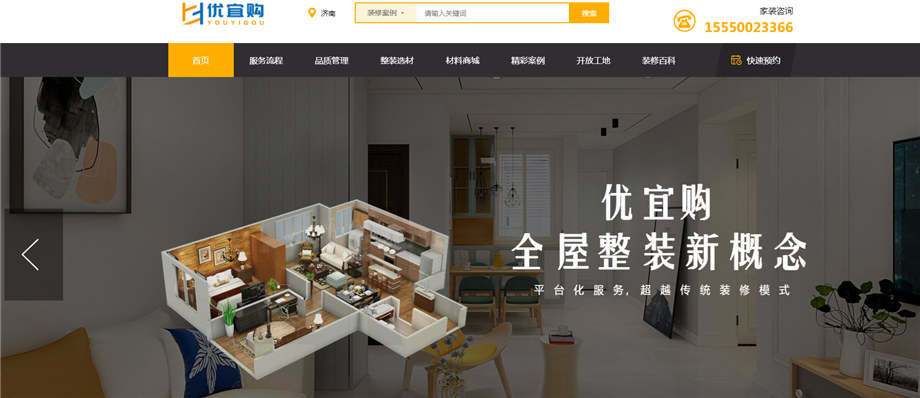热烈祝贺济南优宜购官网上线!新官网内容丰富,栏目齐全,而且支持电脑,手机,微信公众号三网平台接入,更加适合业主的多方面浏览习惯。公司的新官网自上线以来,几日的调试,稳定,已经完备,业主可以进入官网完成很多最最自助装修预约,咨询服务,比如预约设计师,预约查看在施工地,参加活动报名以及抽奖,我们都有在线客服,一对一解决业主的装修疑问咨询。