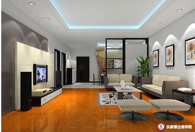 1. 刷涂料:对墙壁进行面层处理,用腻子找平,打磨光滑、平整后刷涂料,主要是乳胶漆。墙的上部与顶面交接处用石膏线(或木线条)做装饰线,下部与地面交接处用踢脚线收口。这是对墙壁最简单也是最普遍的装修方式。这种处理简洁明快,房间显得宽敞明亮,但缺少变化。可以通过悬挂画框、照片、壁毯等,配以射灯打光,进行点缀。现在还有一些新型的涂料,如仿丝绸涂料、多彩涂料等,使墙面处理手段更加丰富。