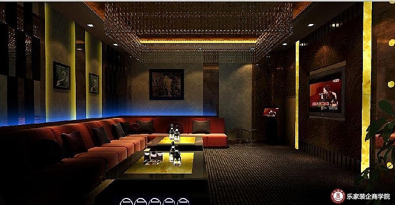 在KTV的装修设计中灯光的设计是重中之重,KTV的灯光设计要注意到每一个角落的灯光效果。